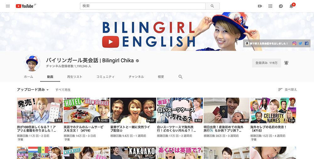 英会話を本当に楽しんで学べるYouTube動画:バイリンガール英会話 ちかさん