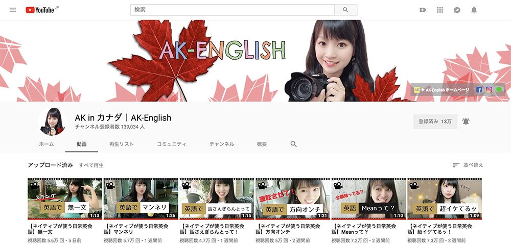 動画作るのがとても大変だろうなあというものばかりで尊敬するばかりで、一人で何役も演じて見たり、シアトルの友達との動画であったり、衣装も用意しつつのモノマネが入った洋楽カラオケだったり、本当に毎回見ていて飽きずに英語を少しずつ勉強ができます。