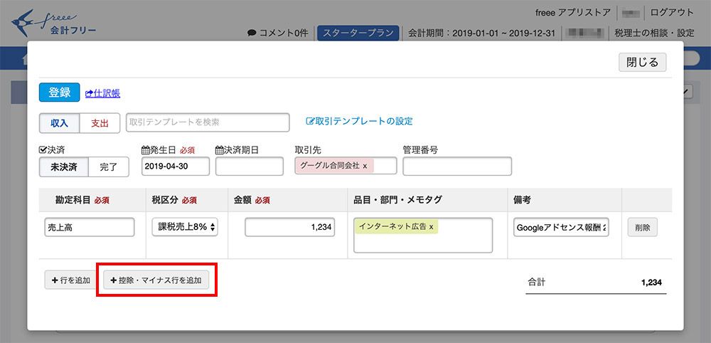 freeeでGoogleアドセンスの入金を消し込む