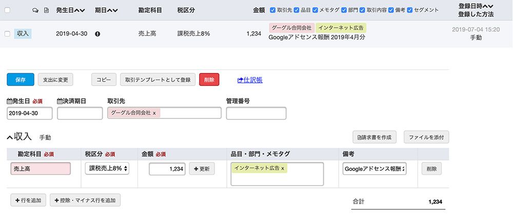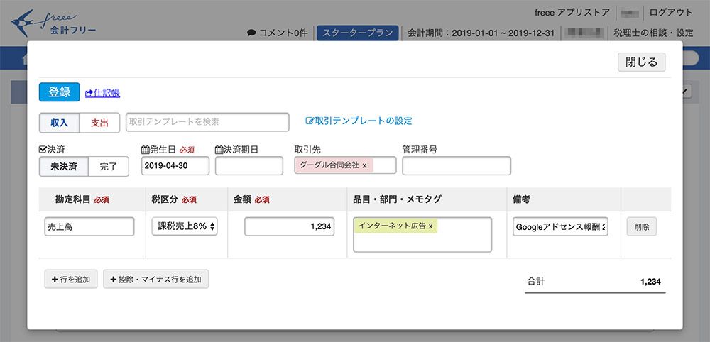 - Googleアドセンスで収益が発生したけど、会計ソフトにどう入力するか分からない