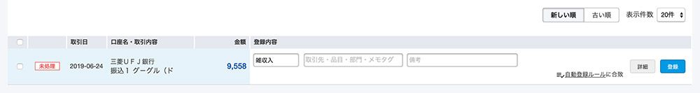 すると、選択した取引が追加されました。以下の画面で問題なければ、また右下の「登録する」を押します。
