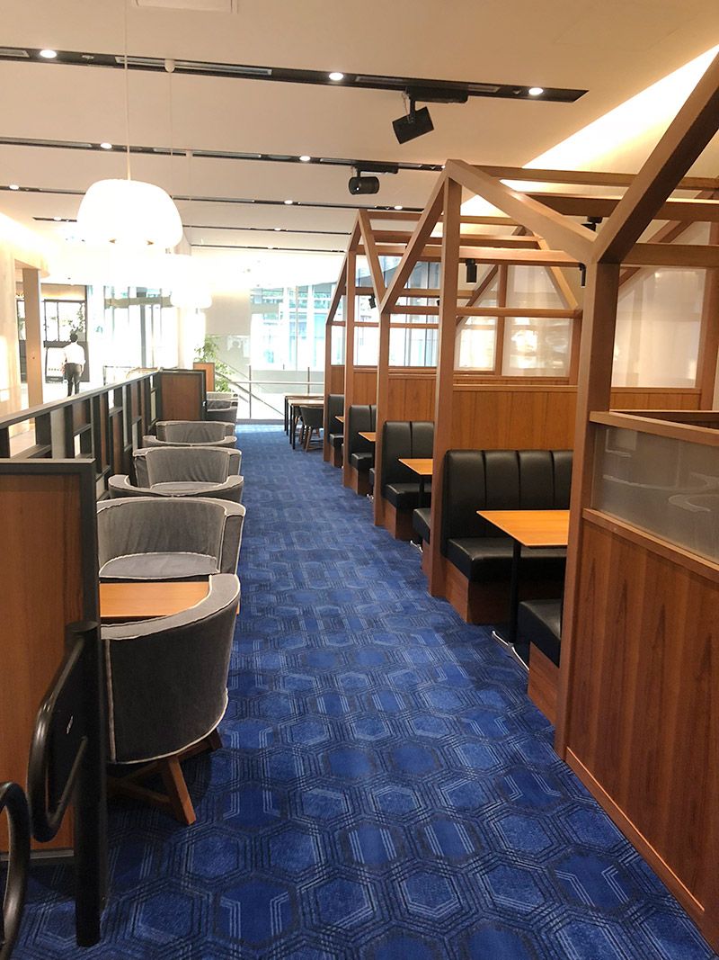 シングルデスク以外にも、ボックスシートやペアシート、4人がけのテーブルもあります。席数は48席。