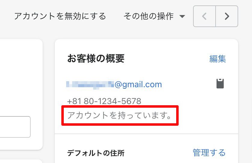 Shopifyで顧客情報を移行した後のアカウント状態