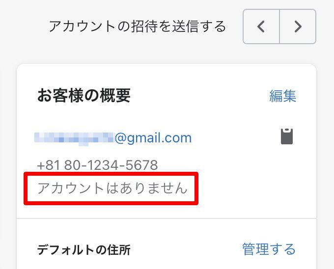 次に、「アカウントの有効化」メールを送信し、そこからパスワード再設定ページで設定してもらう方法です。 顧客情報を移行したユーザーはまだアカウントが有効化されていないため、顧客管理の詳細画面には、以下のように「アカウントの招待を送信する」というリンクがあるので、そちらを押します。