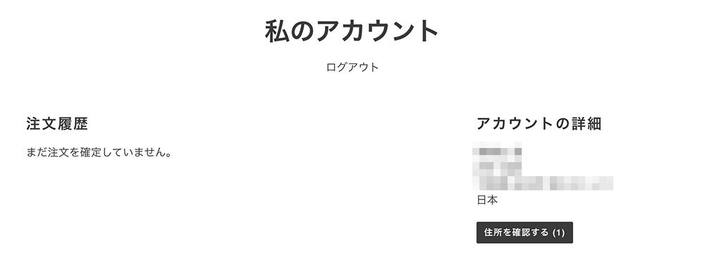 「アカウントを有効にする」ボタンを押すと、マイページに遷移し、以前の住所が登録されていることが確認できます。