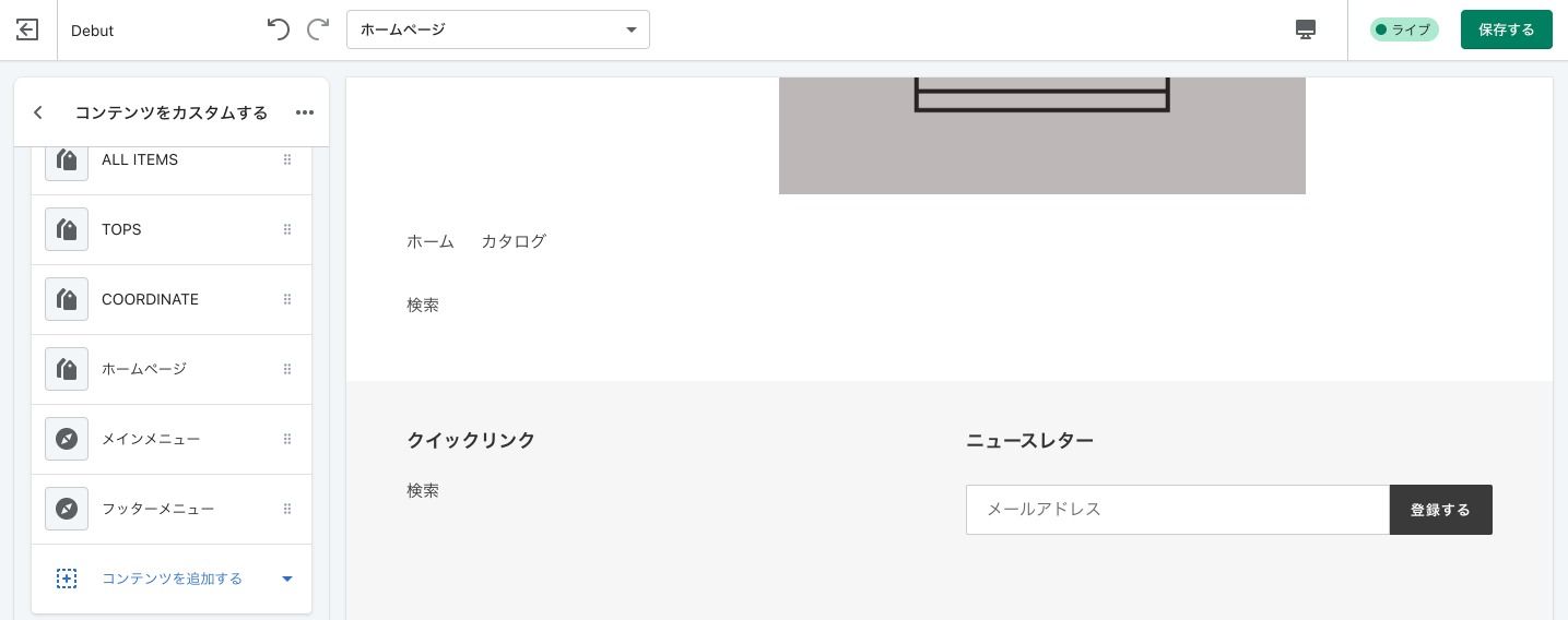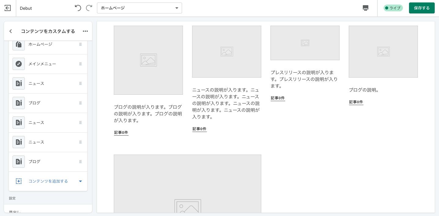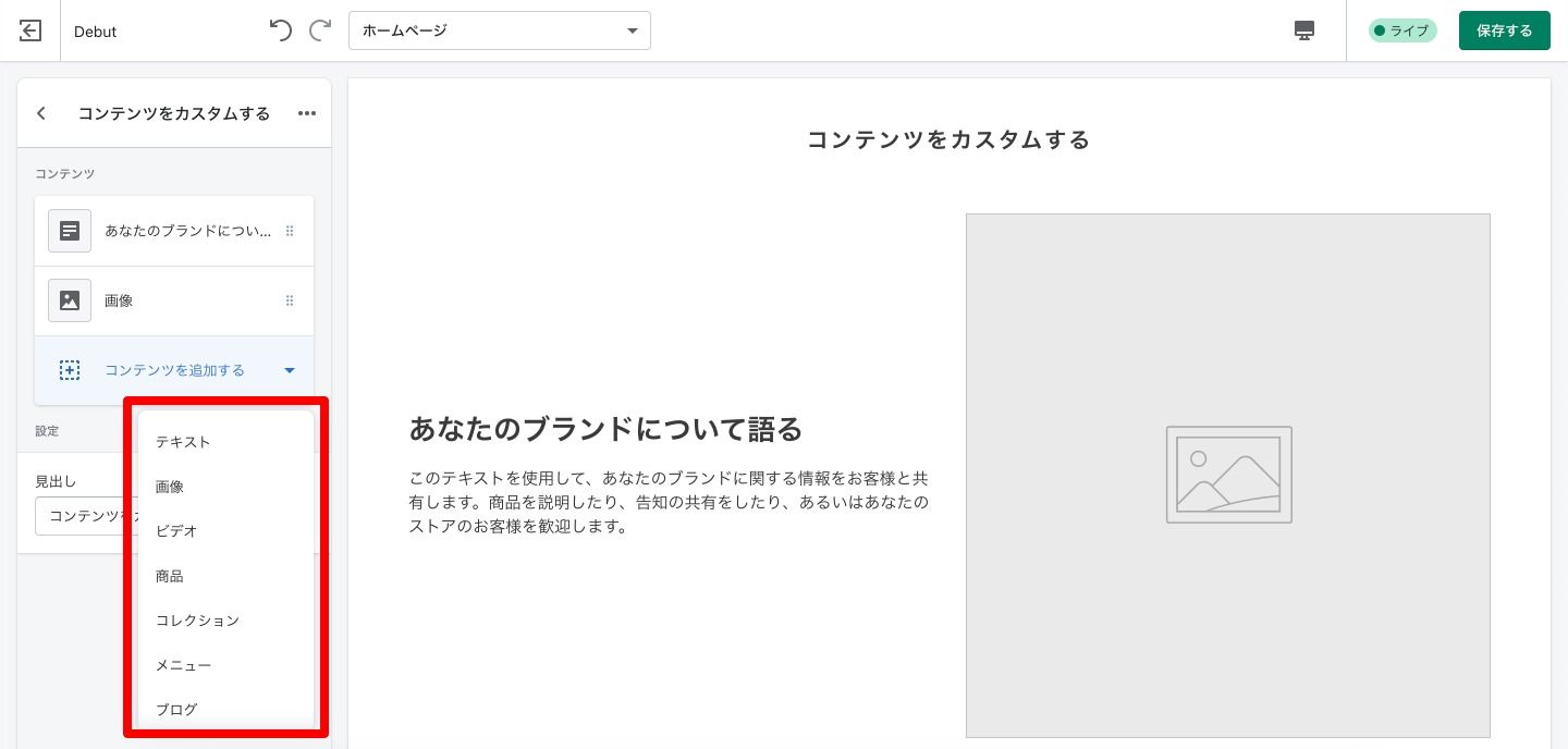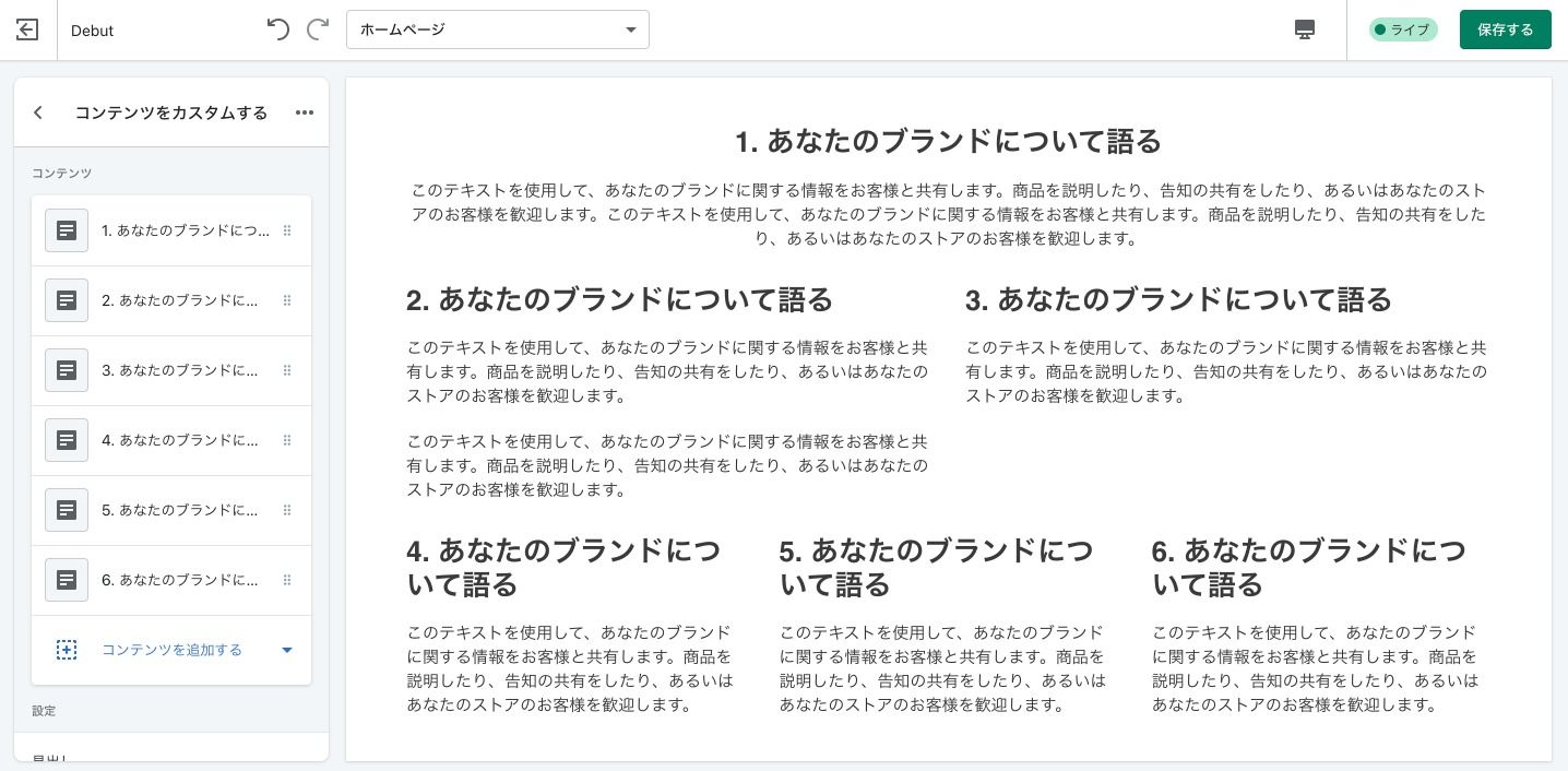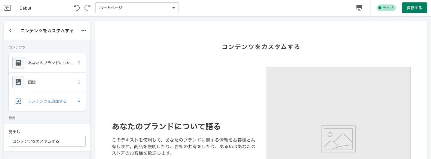 ShopifyのDebutテーマで使用できる高度なレイアウト「コンテンツをカスタムする」とは