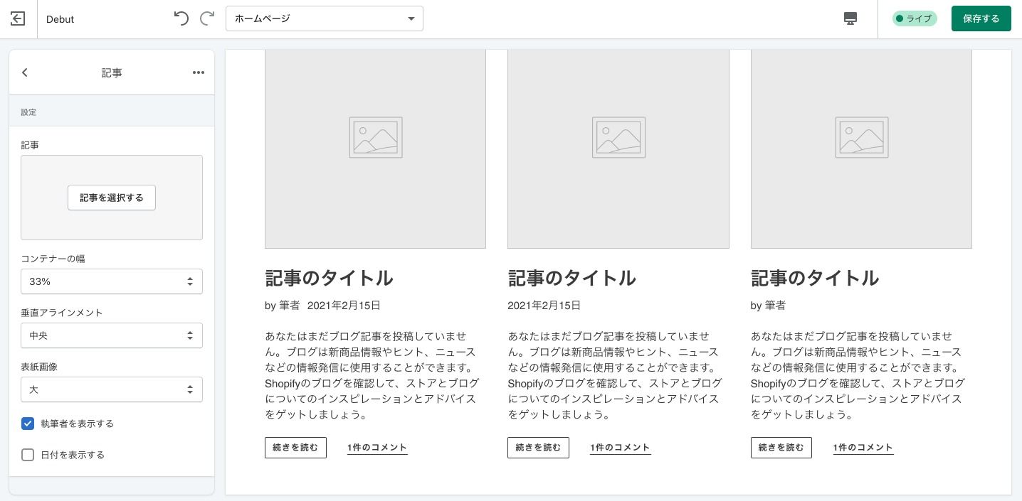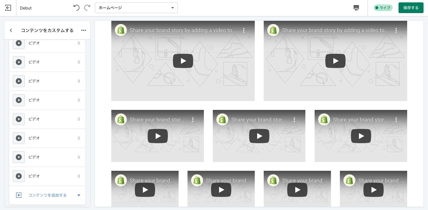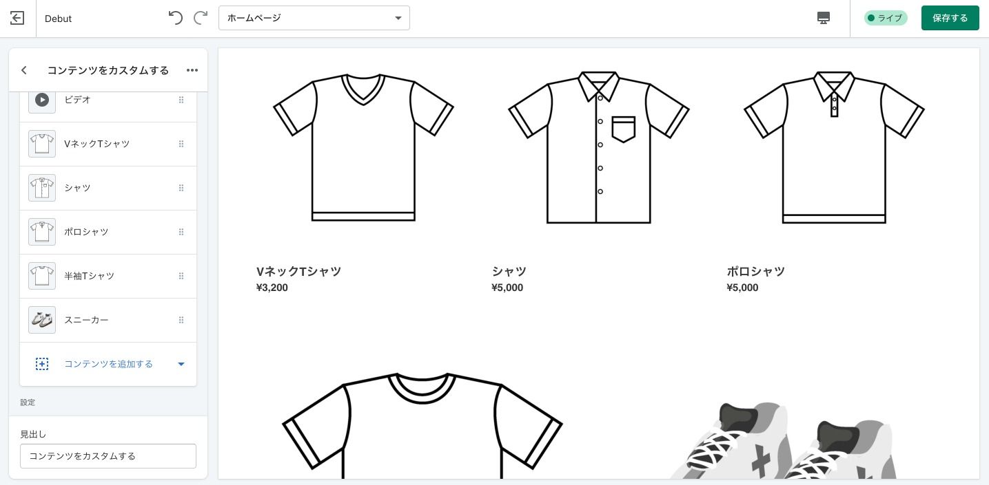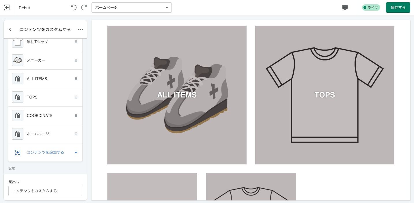 ShopifyのDebutテーマで使用できる高度なレイアウト「コンテンツをカスタムする」とは