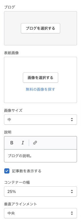 「ブログ」を追加すると、以下のような項目が編集できます。