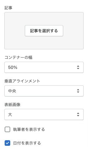 以下のように、1つの幅を指定したり、中央寄せ・右寄せ左寄せ、縦方向の位置も指定できます。コンテナーの幅は25%まで選択できるので、横4列まで表示可能です。