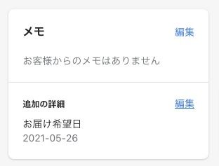 受注詳細画面では、以下のメモ欄の下の「追加の詳細」内に値が入ります。