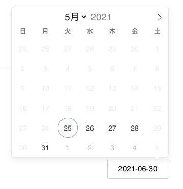 これだけだと全部の日付が選択できてしまうため、- 何日後から選択できるようにするのか