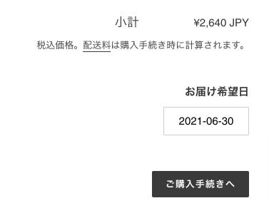 Shopifyの機能には、配送日時指定(お届け日時指定)の機能がデフォルトでついていません。 よって、配送日時指定のアプリを入れる必要がありますが、有料のものがほとんどです。年間にするとそれなりのコストになるため、今回は自分でコードを編集して実装した時の方法をまとめていきます。 時間の指定を実装することも可能ですが、今回は「配送日」のみの指定方法についてまとめます。 時間の指定は以下を参照ください。