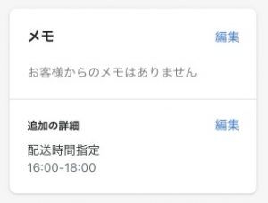受注詳細画面では、以下のメモ欄の下の「追加の詳細」内に値が入ります。