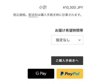通常のECサイトはその先のお届け指定などの箇所で選択すると思いますが、Shopifyの通常のプランで入力項目を追加できるのはショッピングカート画面のみです。