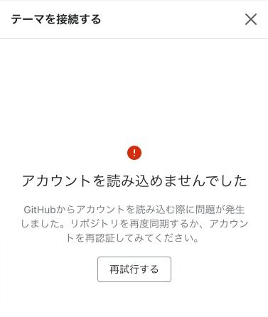テーマを接続する画面に進めずに、以下の画面が表示される場合がありますが、一度ログアウトし、パートナーアカウントのストア管理からではなく、storename.myshopify.com/admin のURLから直接ログインすると入れました。(ただこれでも入れない場合があり、今のところ原因不明です)