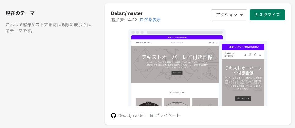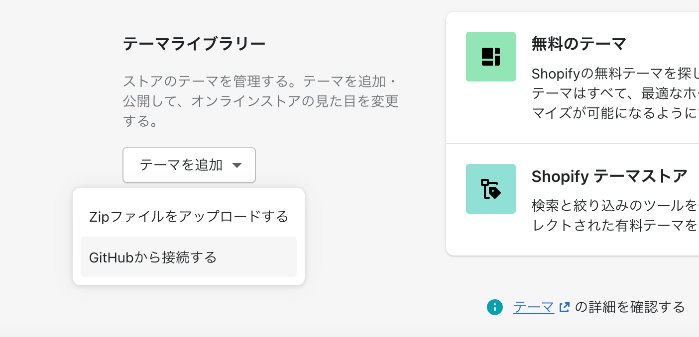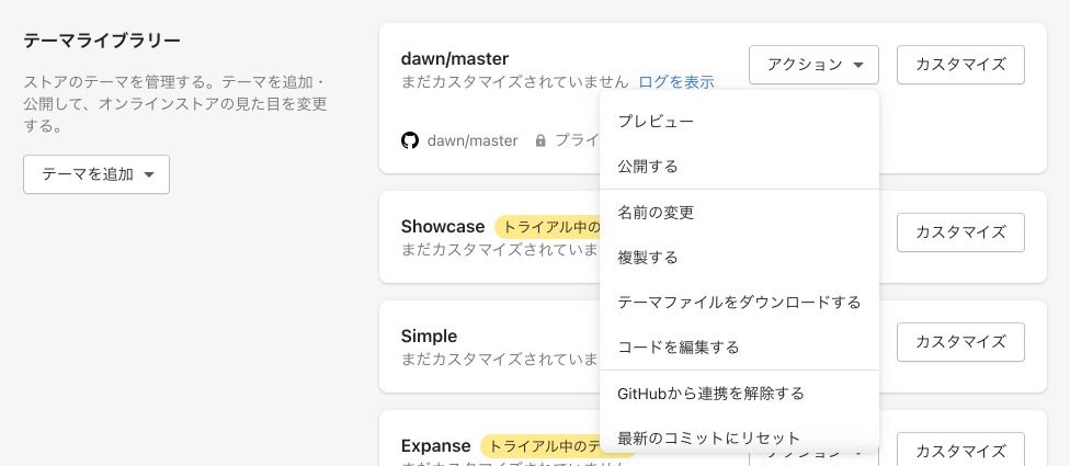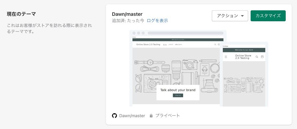 これでGitHub上のShopifyテーマが以下のようにShopifyに統合されました。