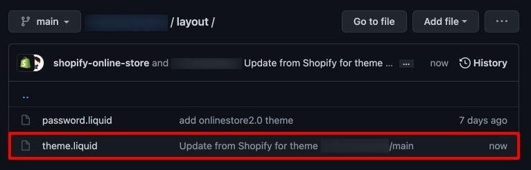 プレビューで確認したら、shopify theme push でプッシュし、GitHubで確認してみるとこちらも正しく更新されていました。