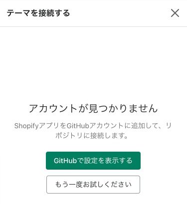 Shopifyにアカウントをまだ接続していない場合は、以下の表示になるため、「GitHubで設定を表示する」を押します。