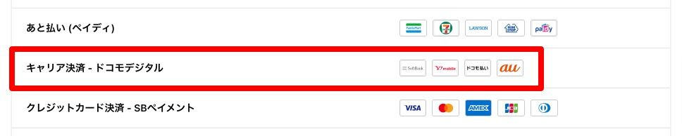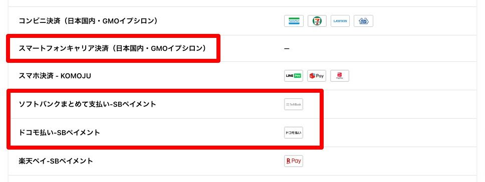 GMOイプシロンの携帯キャリア決済は、ドコモ払い・auかんたん決済・ソフトバンクまとめて払いで利用できます。SBペイメント