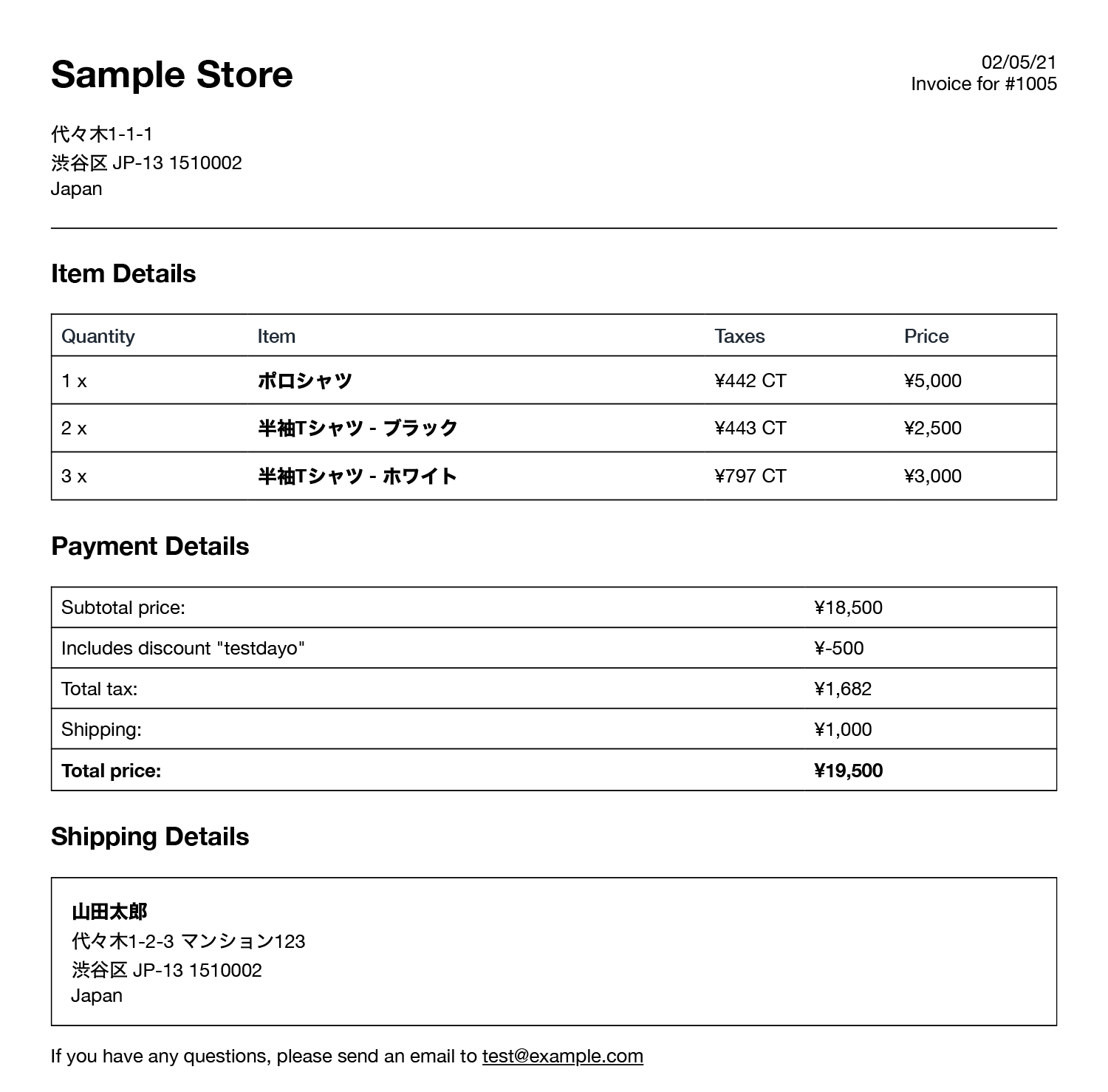 - If you have any questions, please send an email to test@example.com → ご不明な点がございましたら、test@example.com までご連絡ください。