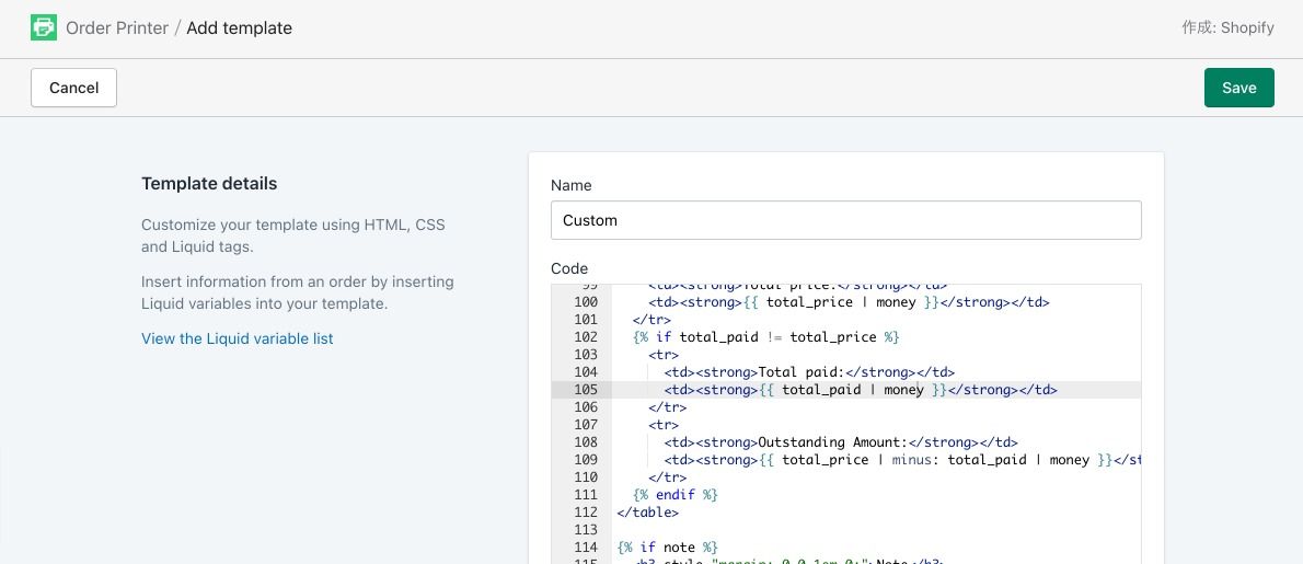 Shopifyの納品書アプリ「Order Printer」テンプレートをカスタマイズする
