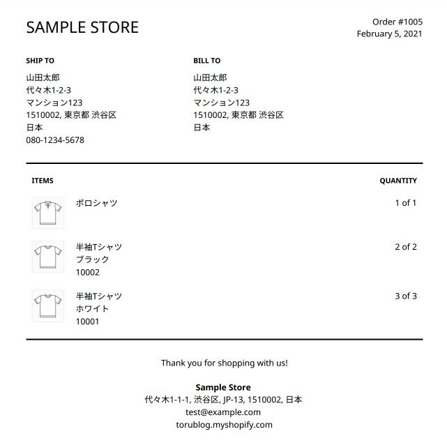 Shopifyでショップを構築する上で必要となる一つに、商品を送付する際に同梱する納品書がありますが、Shopifyでは現時点でデフォルトでは日本語に対応していません。